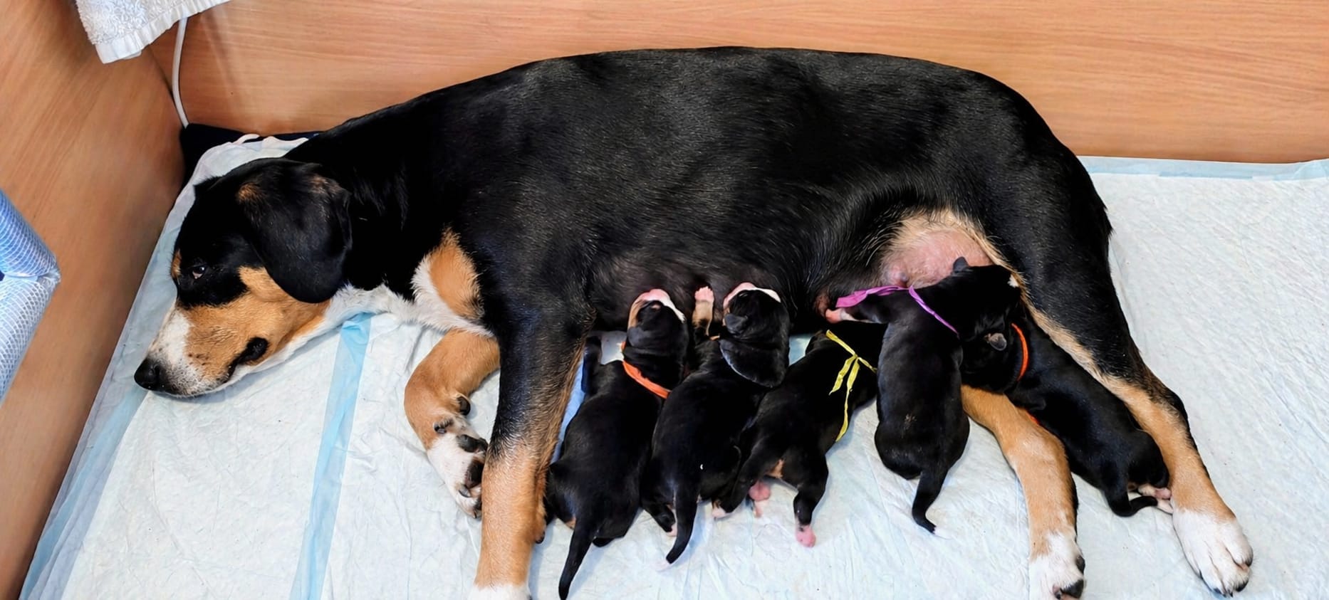 Od středy 22. 4. 2026 se Arianna vzorně stará o svá štěňátka.